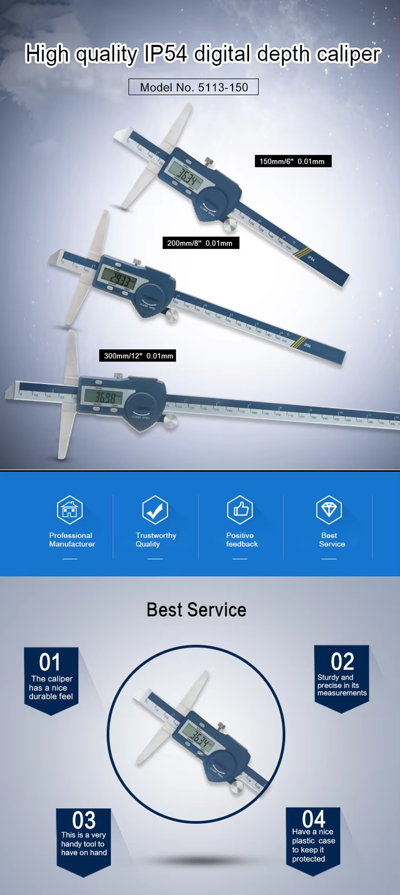 It features unit conversion and can be reset at any position, making it ideal for measuring the depth of small holes.