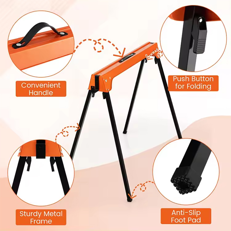 User-friendly Details: There is a grip handle on each sawhorse for easy carrying, thus you can take the sawhorses anywhere you want with ease. In addition, the anti-slip foot pad keeps the sawhorse in place for additional stability. And it effectively prevents the floor from scratching.
