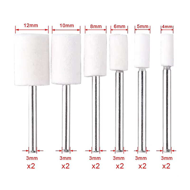 12 Pieces cylinder shaped grinding heads (diameter: 4 mm/ 5 mm/ 6 mm/ 8 mm/ 10 mm/ 12 mm)