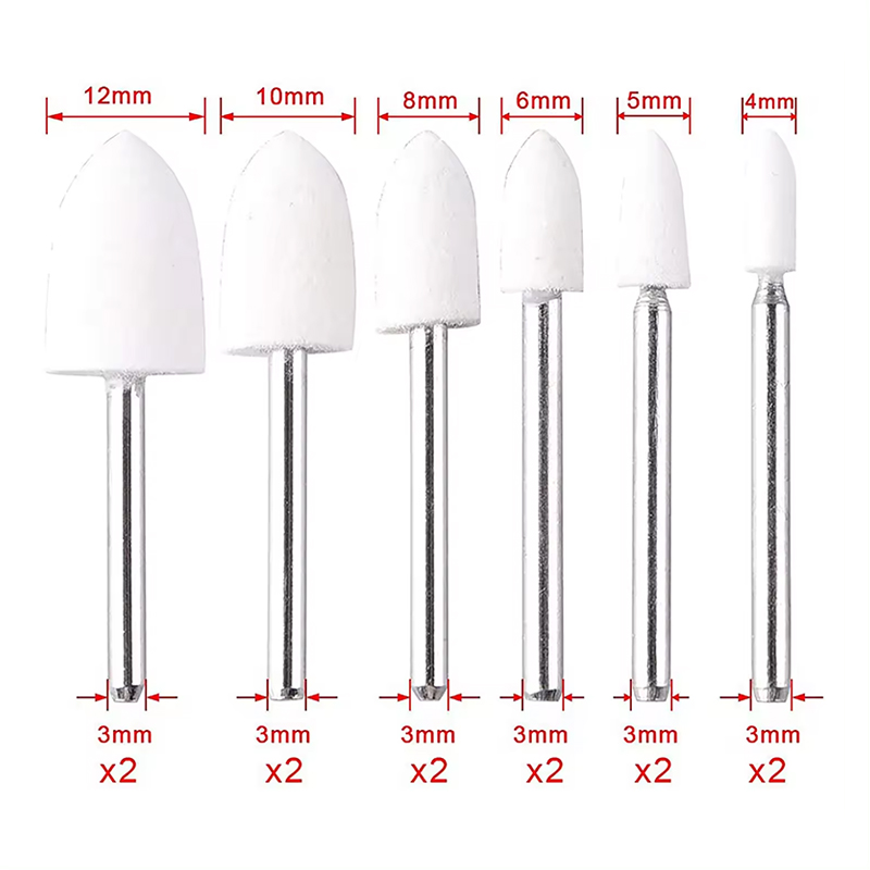 12 Pieces bullet shaped grinding heads (diameter: 4 mm/ 5 mm/ 6 mm/ 8 mm/ 10 mm/ 12 mm)