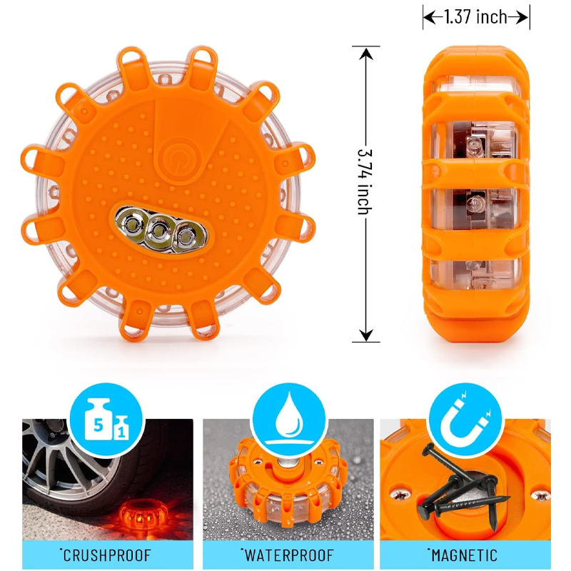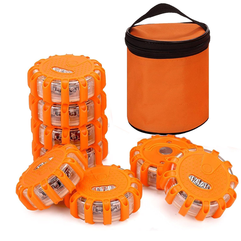 - ✅Safety Emergency Disc Beacon Flashing Flare Kit: 8 Pack LED Road Flares Emergency Light with Storage Bag great for dividing up among family members; A Perfect Emergency Kit to keep in the trunk of their vehicles for Roadside emergencies and distress situations. (We recommend AAA batteries to these LED road flares light, BATTERIES NOT INCLUDED)
