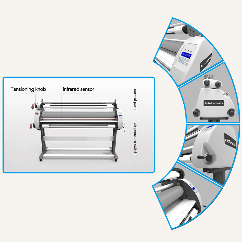 ⑨Control panels—laminating temperature and speed(1~9 shift) control,hot/cold shifting