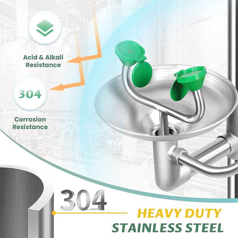 - Regulating valve of eyewash nozzle can adjust water pressure. Double-layer filter screen makes the water column cleaner and gentler without hurting the eyes.