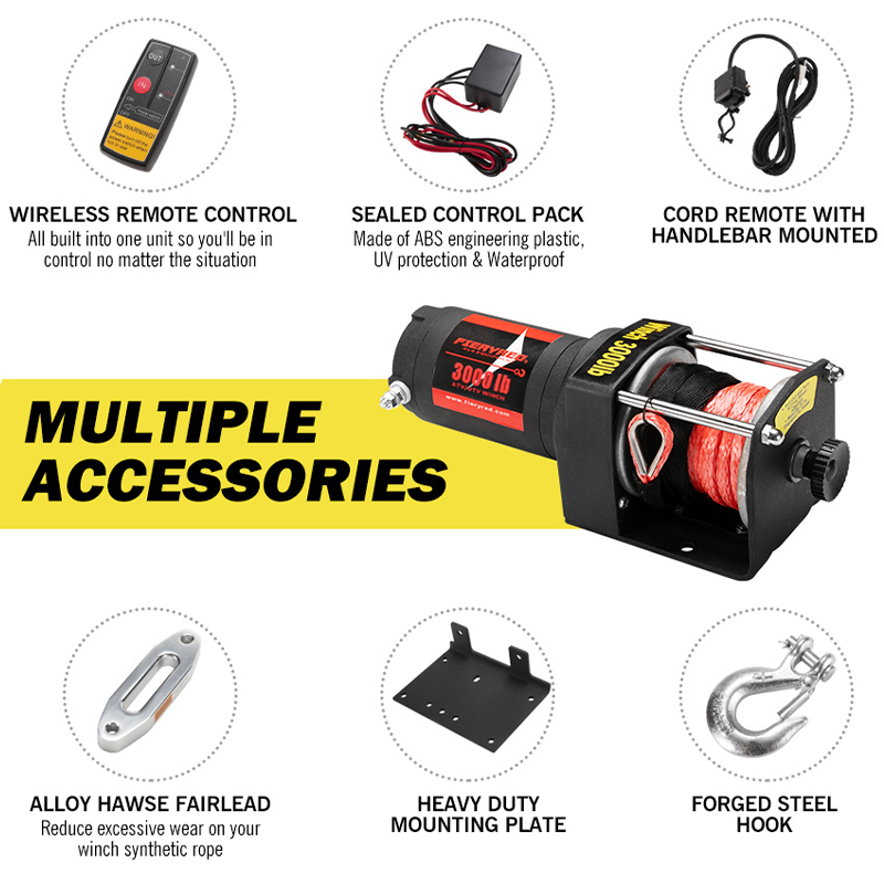 Specification of the FIERYRED 12V 3000lbs Electric Winch