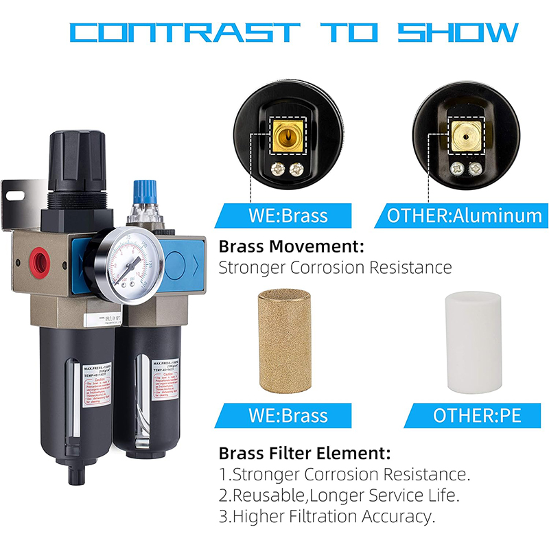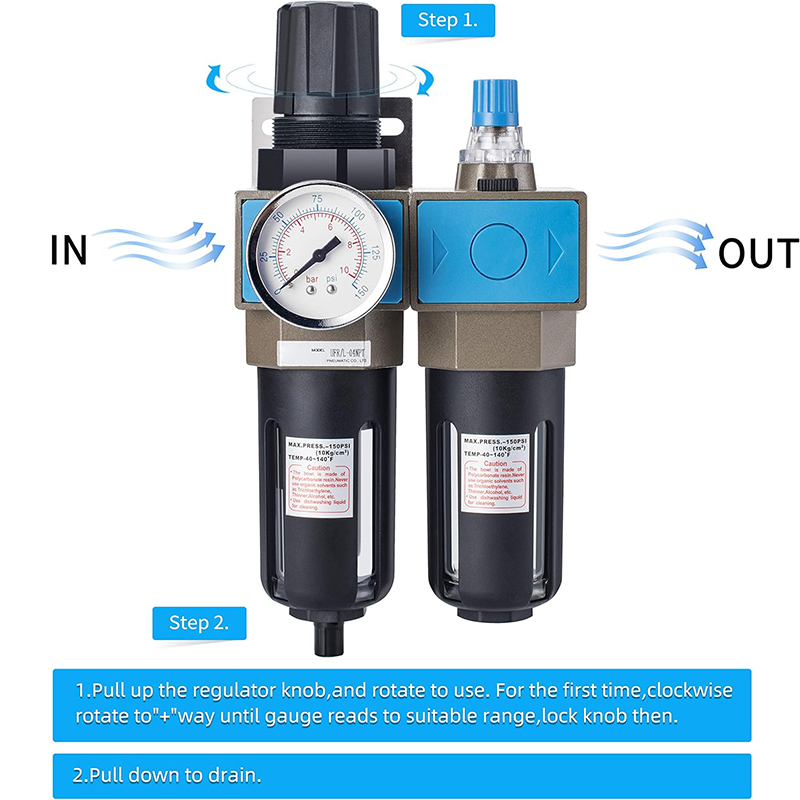 The Air Filter Regulator Lubricator provides a safer and more effective drying solution for your pneumatic equipment, efficiently filter out moisture and particles in the air.