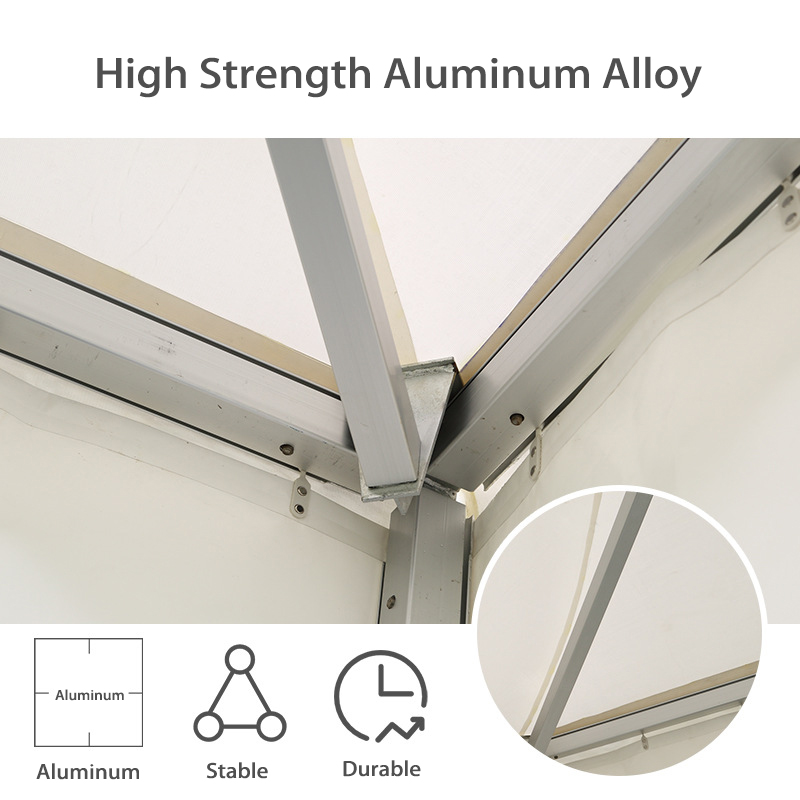 - The entire frame is made of high-strength aluminum alloy. Bold and thickened frame, fixed with galvanized screws, high hardness, strong load-bearing, strong wind resistance, and not easy to rust.