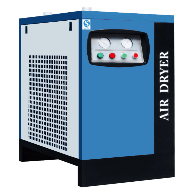 The amount of water vapor in compressed air is determined by the temperature of the compressed air. Lowering the temperature while maintaining the same pressure can reduce the the content of water vapor decreases, and excess water vapor condenses into a liquid. Freeze drying a dryer uses a refrigeration type device to cool compressed air to a certain dew point temperature, precipitation of water, discharge of water, thus drying compressed air.