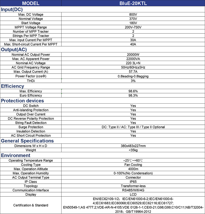 KSTAR BluE 12K—20KTL series is a nice match for residential installations thanks to its compact size and light weight. Manufactured for durability and longevity under modern industrial standards, KSTAR Blue series is IP65 rated so it can be mounted either inside or outside your home. Enjoy your unparalleled experience of green energy, optimal solar energy usage, reduced electricity bills and much more.