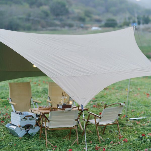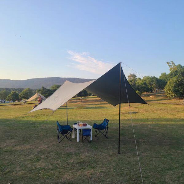 The edge of the Shade Canopy is reinforced with 25mm nylon webbing and copper buckles. The double stitching process makes the connection stress point of the pole and the wind rope strong and durable.