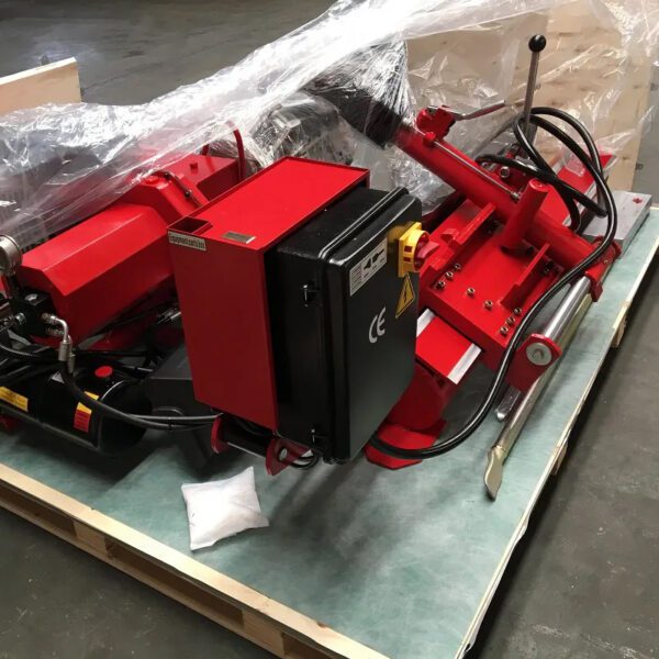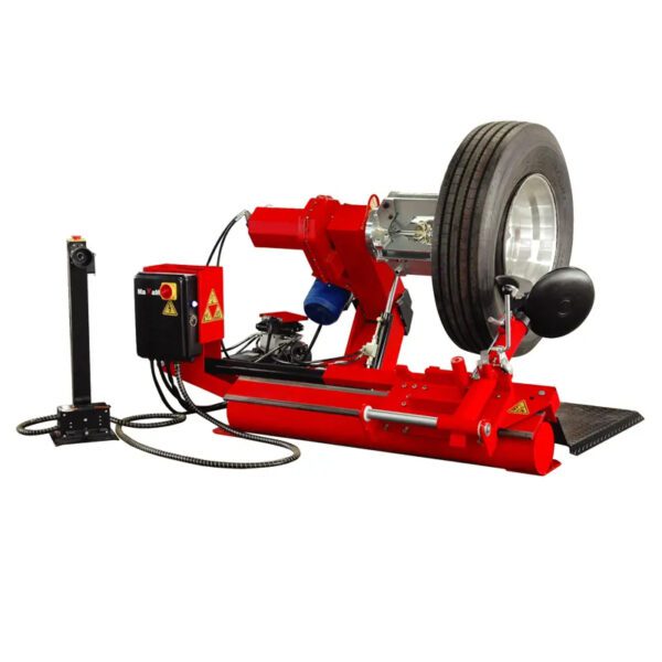 5, Hydraulic sliding carriage for positioning, bead loosening, mounting, and demounting procedures.
